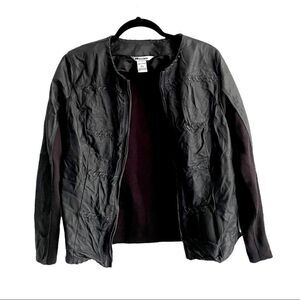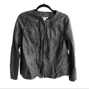 NYGARD Collection Black Leather Zip Front Long Sleeve Leather Jacket