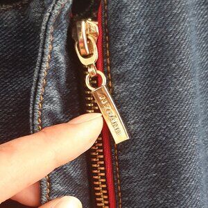This pretty denim jacket with zipper and 2 small pockets on the sides with zipper also classic style with not much wear the fabric is of quality and durable which makes it a superb purchase.