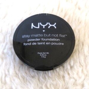 NYX Stay Matte But Not Flat Powder Foundation. Color: SMP-12 Tawny (see attached NYX color chart). SIZE: 0.26 oz.(7.5g). Lightweight powder foundation that has a buildable coverage and a natural matte finish.