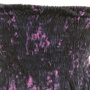 Always look like you are on vacation in this beautiful Luau strapless dress with vibrant Hawaiian floral pattern. Features a halter tie, smocked band on back and ruffle piece on front.