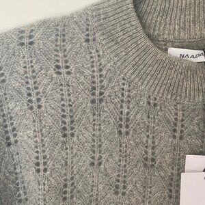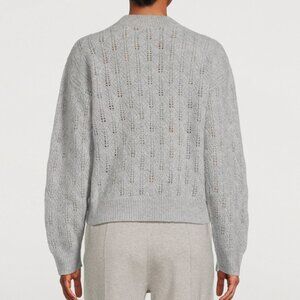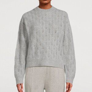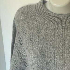 Naadam Cashmere Pointelle Knit Sweater Gray Medium Crewneck Relaxed Fit Classic