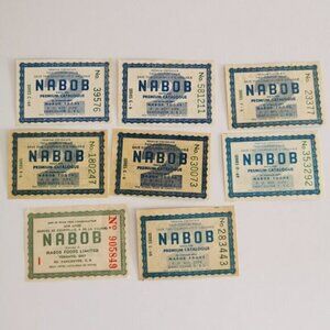 Nabob Foods Coupons Set of 8 Vintage Coffee Jam Peanut Butter Canada Ephemera Certificates Marmalades Tea Bags