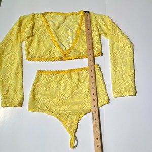 ✦Nadhenri&co Two Tone Yellow Lace Lingerie Set Long Sleeve and High Waisted Thong
