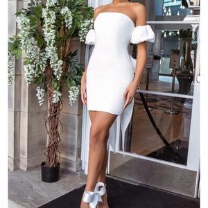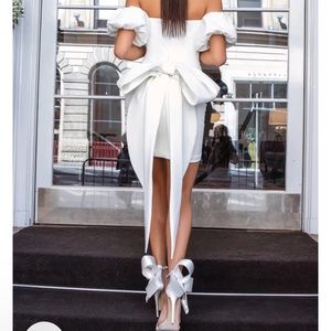 Worn once - dry cleaned. Altered for bow attachment and 1” shorter hem.