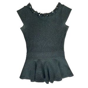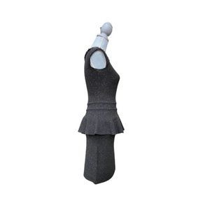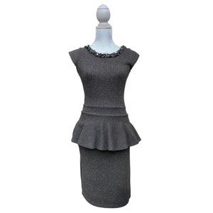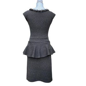 Nadya Toto Embellished Pearl Neck Peplum Top Straight Pencil Skirt Set Black Tweed XS