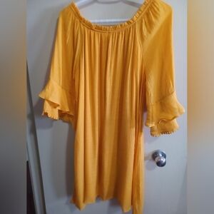 Naïf Boho Cold Shoulder Dress Sz M/L Yellow Crepe Knee Length Scoop Neck Island
