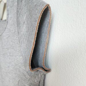 From French brand Naf Naf, hugely popular in the 90s, this whimsical dress with a Black Mirror vibe has a unique silhouette. The thick, neoprene-like fabric creates a theatrical effect perfect for Halloween outfits or fashion statements. This easy care dress in heather gray can also be styled many ways for everyday wear.