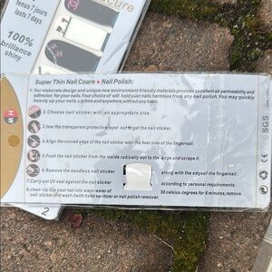 Stylish decal and patch set for a chic French manicure. Includes various designs in black, gold, and silver. Designer logo embellished. One set includes instructions. But I don’t know how to apply or explain the ones in the plastic box , but a nail tech should be able to figure it out I think. All things shown are included in this lot of items for sale.
