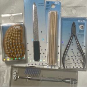 Cuticle oil, cuticle nippers, cuticle pushers, cuticle sticks, and a multitude of different kinds and sizes of nail clippers and tweezers, from Quo to Tweezerman.