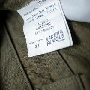 Naked & Famous Army Green Duck Canvas Selvedge Classic Fit 27