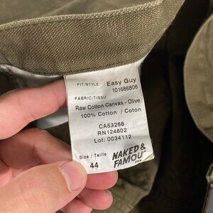 Naked & Famous Easy Guy Raw Cotton Canvas - Olive 14oz Denim Size 44x32