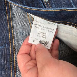 Naked & Famous Jeans Size 33 Left Hand Twill Selvedge Blue