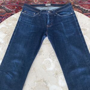 In excellent preowned condition Naked & Famous Weird Guy stretch selvedge jeans. N&F's Stretch Selvedge is one of the brand's most popular core selvedge fabrics, and for good reason. This fabric combines the comfort of stretch and the durability of cotton with the craftsmanship of made-in-Japan selvedge. As a result, this jean is great for those who are looking to wet their toes in the raw denim world.