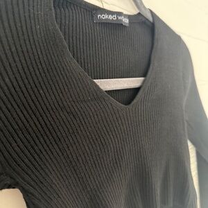 Naked Wardrobe Small | Black Ribbed Long Sleeve Crop Top