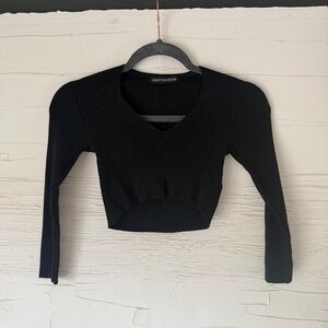 Naked Wardrobe Small | Black Ribbed Long Sleeve Crop Top
