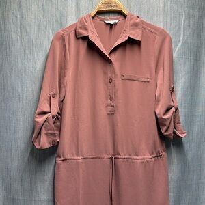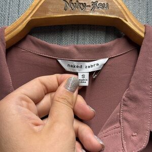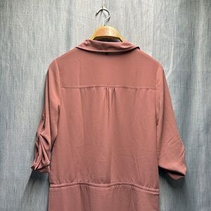 Chic mauve blouse with 1/4 button-up front. Ideal for versatile styling.