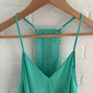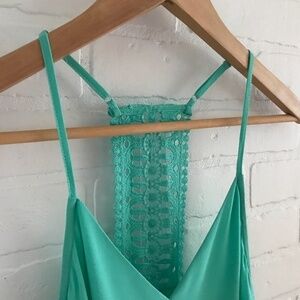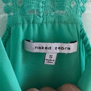 Naked Zebra Tank top Teal Green Aqua RacerBack Crochet Draped Size S