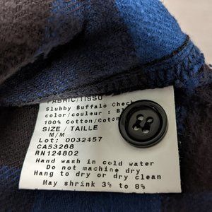 Naked & Famous Work Shirt in blue Slubby Buffalo Check in size medium. Website with information and sizing: