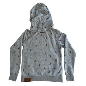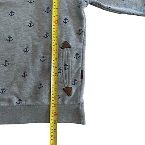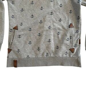 Naketano Grey Cowl Neck Hoodie - Size Large - Nautical Anchor Print Sweater - L