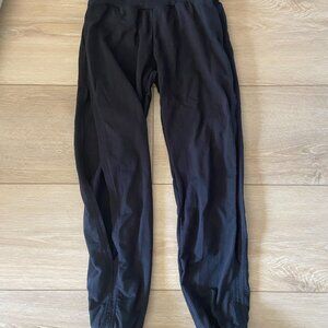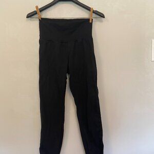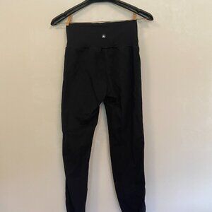 Black yoga pants from Namastetics (NAMA). Split-side from mid-thigh to cuff. Jogger-style cuffed bottom. Size small. Excellent used condition.