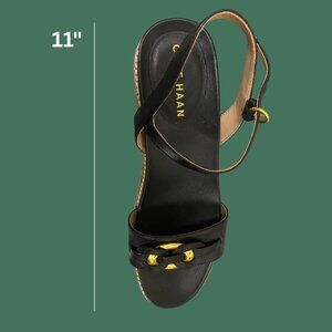 Step up your style with these Cole Haan black leather wedge pumps, a refined choice for business attire, special occasions, or elevating your everyday look. Crafted from smooth premium leather with a rounded toe, subtle stitching, and a sleek wedge heel for added stability. The 3" heel adds height while maintaining comfort, and the cushioned insole provides support for all-day wear.