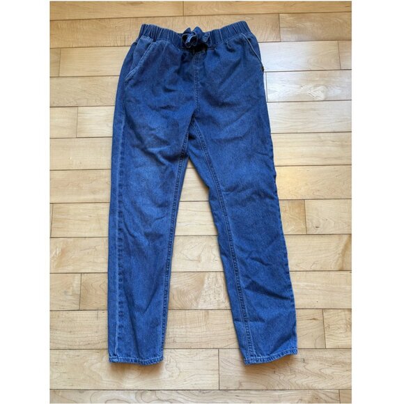 Comfortable and versatile, these blue denim pants are perfect. Featuring an elastic waistband with a loop, they ensure a secure and adjustable fit. The relaxed design offers plenty of room for movement, making them ideal for playtime or casual outings. Simple and stylish, these pants are a practical addition to any girl's wardrobe.