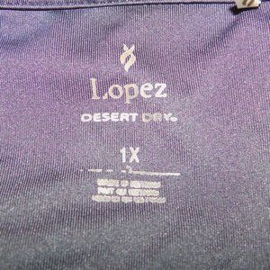 This Womens 1X Nancy Lopez Golf Desert Dry Black Red White Yellow Striped Golf Polo Shirt is in Excellent clean condition. Shirt is 92% Polyester - 2% Spandex - machine washable. Moisture wicking and quick drying perfect for casual wear out on the course or just outdoors.