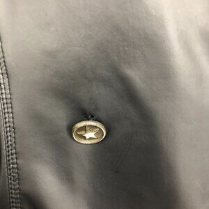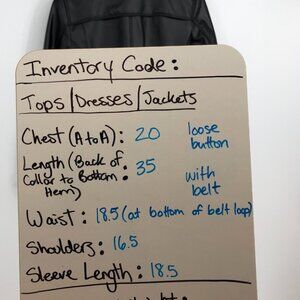 Good, pre-owned condition with no rips, holes, or stains. A few small spots of wear in the leather and one button is coming a little loose. Size is cut off, along with the rest of the tags, please check measurements below.
