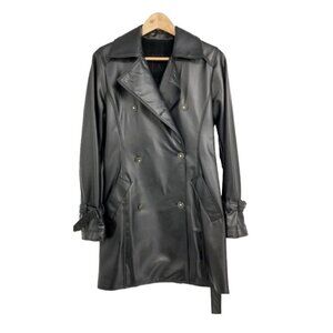 Nancy Lord Couture Vancouver Black Double Breasted Leather Trench Coat