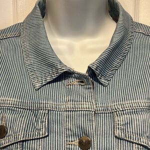 Nanette Lepore Blue/White Striped Denim Jacket Size Small