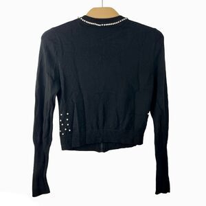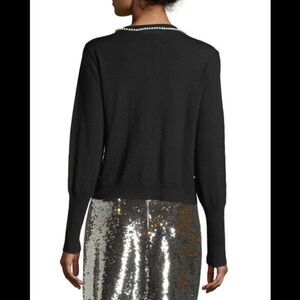 Nanette Lepore Carnival Pearl & Rhinestone Embellished Black Wool Cardigan US S