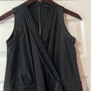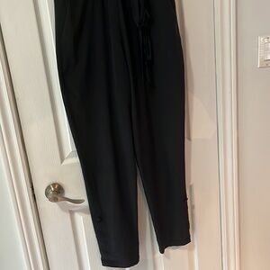 For your consideration is a Nanette Lepore Jaipur black jumpsuit. Size 6 . Shows some signs of wear but is in Very good preloved condition. This sleeveless jumpsuit features knotted and loose mat and satin banding at the cross over the neck gathered elastic banding at waist and slant pockets at hip 2-button keyhole at back slouchy leg.. can be worn full length or rolled up and buttoned as in photo..