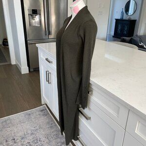 Nanette Lepore Merino Wool Open Front Ribbed Duster Sweater Olive Green Sz XS