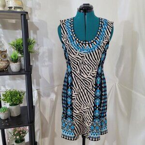 Nanette Lepore Safari Floral Zebra Lagoon Multi Sleeveless Knit Sheath - Large