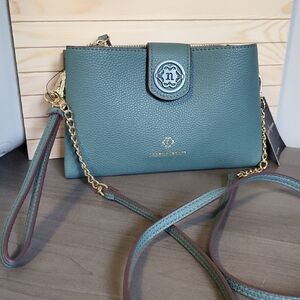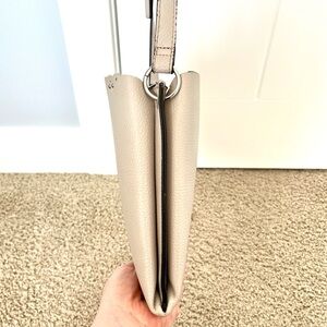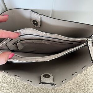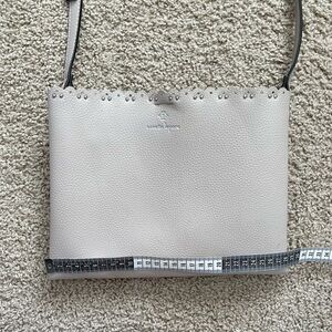 Nanette Lepore Scalloped Edge Studded Pebbled Grey Adjustable Strap Zipper Purse