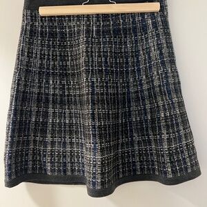 Navy / Silver tweed Nanette Lepore skirt; sweater material; comfy and very chic looking
