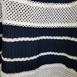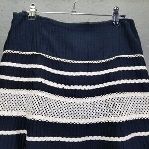 Nanette Lepore Skirt Sz 2 Black Cream Lace Trim Midi Fit & Flare Lined Vintage