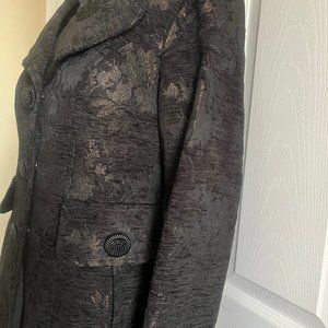 I bought this at Holt Renfrew Square One - never worn - it's an exquisite brocade fabric style coat in black and deep copper, with large lapels.