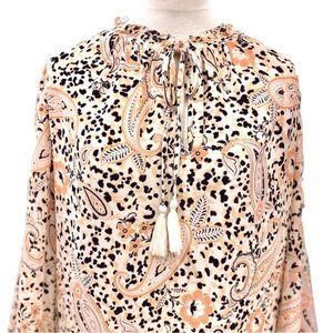 Nanette Lepore crepe chiffon boho animal print paisley peasant top. Size 1X