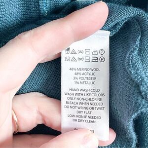 Nanette Lepore Sweater Teal Wool Blend Glitter Stripe Women's S Dolman Sleeves. Lighter weight sweater. Very good used condition. Please see photos for approximate measurements.