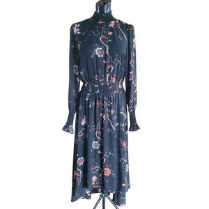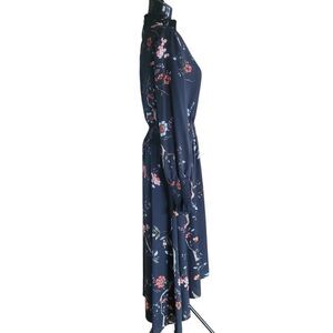 This elegant Nannette dress features a striking red and black color palette, perfect for wedding guests or cocktail events. The A-line silhouette is complemented by long bishop sleeves and a sophisticated mock neck, creating a timeless and chic look. The high-low hemline adds a touch of modern flair to this classic design.