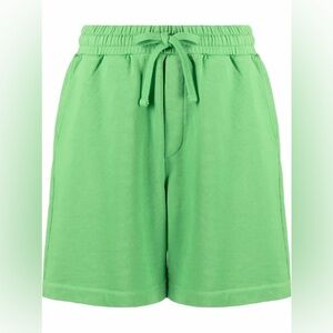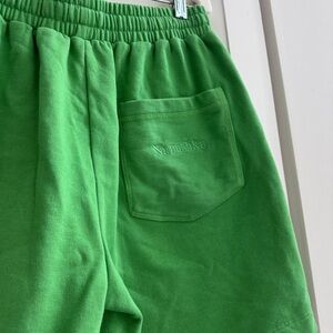 Bright green sweat/lounge set by Nanushka. Includes cozy top and drawstring shorts.