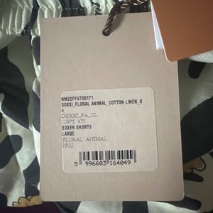 Woven linen shorts with elastic/drawstring waist and 2 pockets.