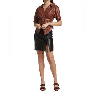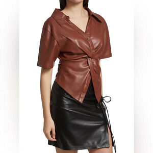 Nanushka Thora Twist Front Vegan Brown Faux Leather Top