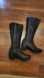 Turn heads with these gorgeous black slightly-distressed leather boots featuring striking button accents.