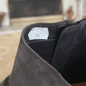 The Naot Emerald is a fun and cute every day ankle boot with a geometric cut out design. Featuring a combination of leather and suede with side zippers. Orthotic friendly. These comfortable boots are in excellent preowned condition.