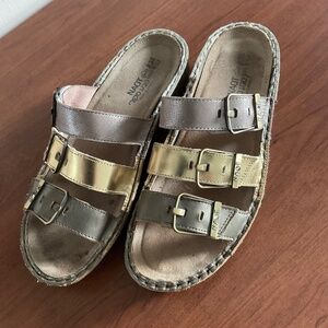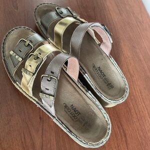 Naot Sandals Metallic Silver Gold Buckle Platform Size 38. US 7,5