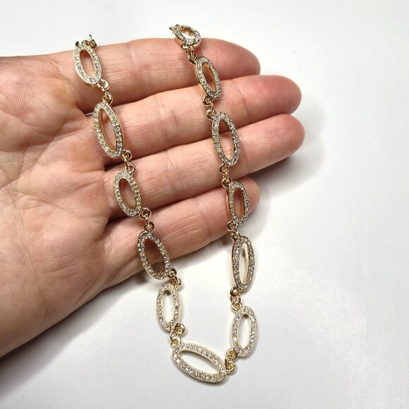 Napier Gold Tone Oval Link Necklace with CZ Stones | 15.75–18 Inch Adjustable