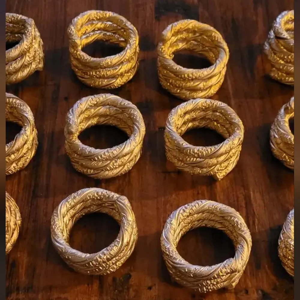 Dress up your dinner table with these gold metallic napkin rings. Light weight metal.