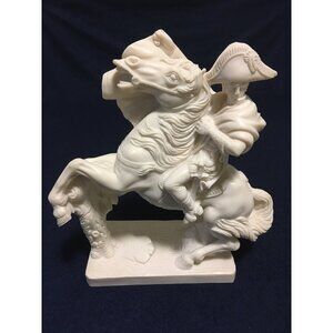 Description: Horse mounted Napoleon statue, on base pedestal , Napoleone sign engraved on base.